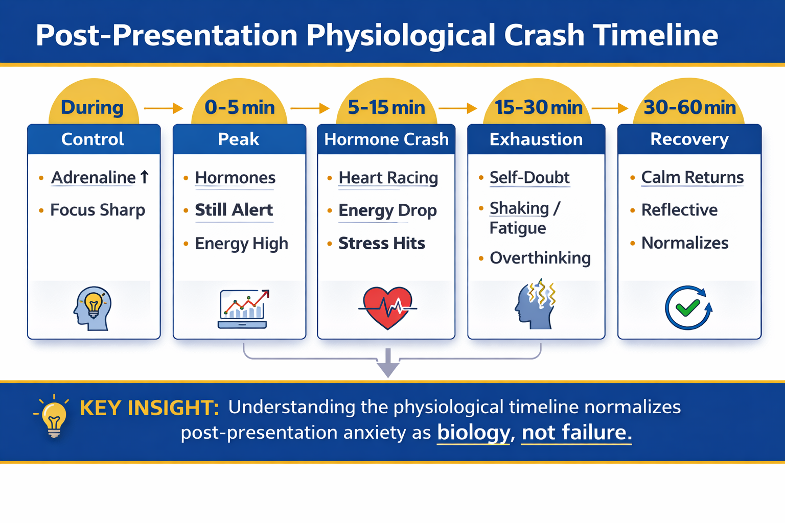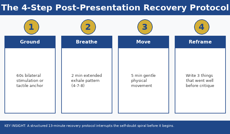 Timing matters. Grounding at the wrong moment is less effective than grounding at the right one. Presentation anxiety follows a predictable curve, and there are three windows where intervention has the greatest impact.